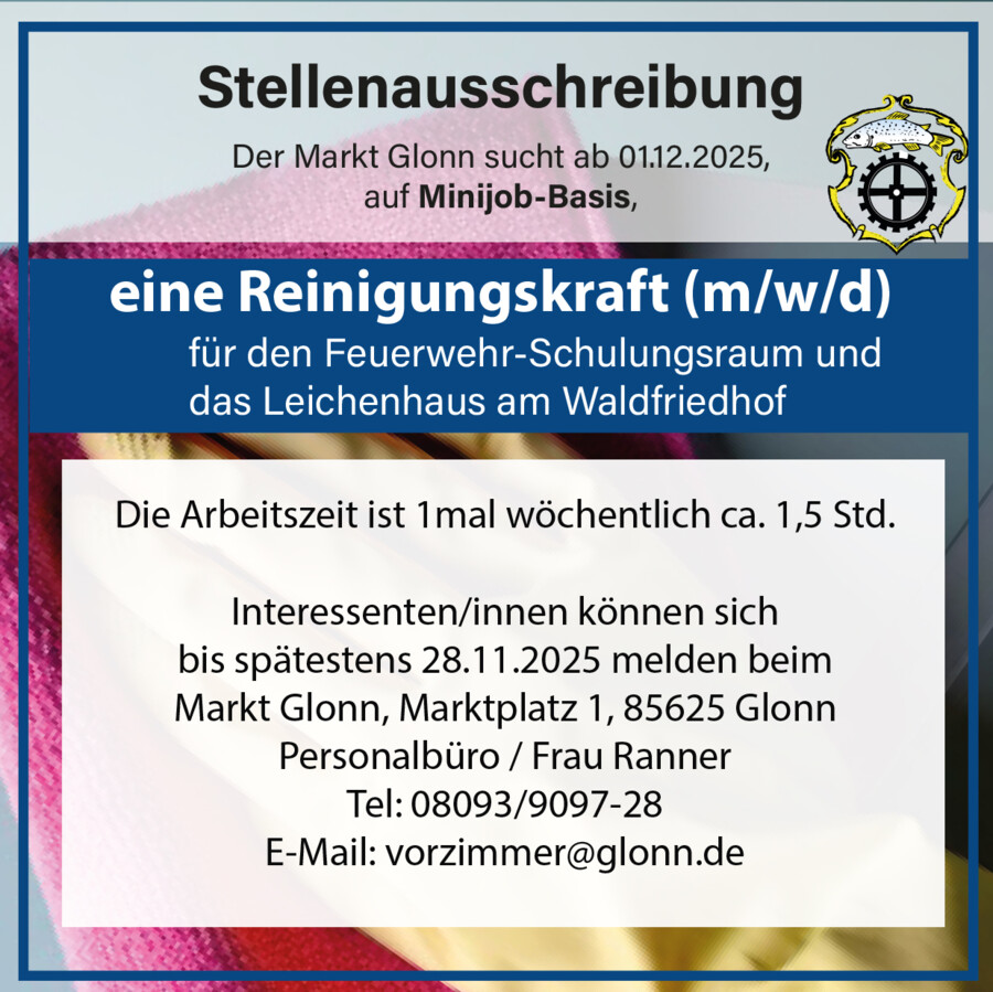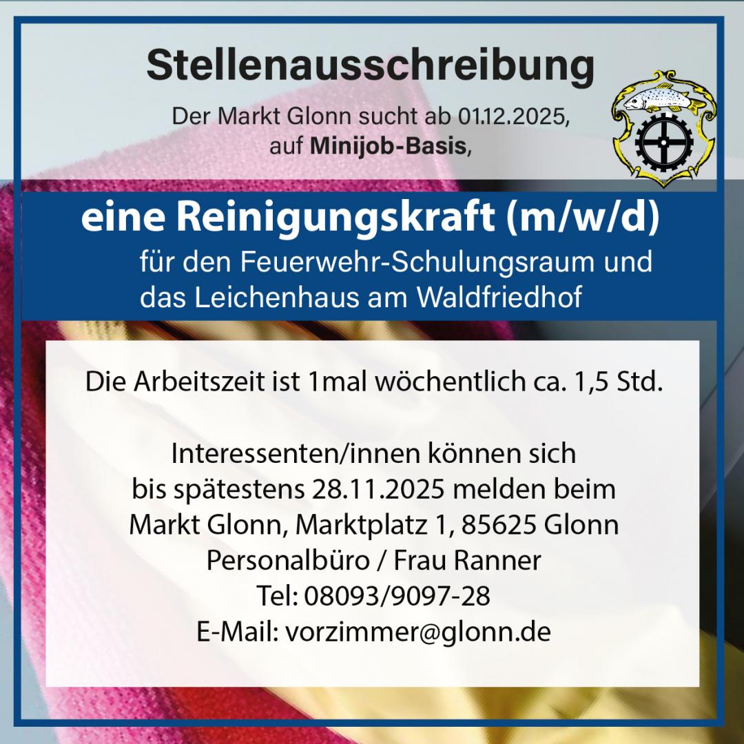 | Reinigungskraft (m/w/d) auf Minijob-Basis für Feuerwehr-Schulungsraum und das Leichenhaus am Waldfriedhof
